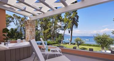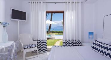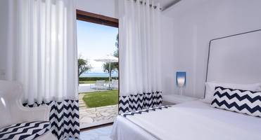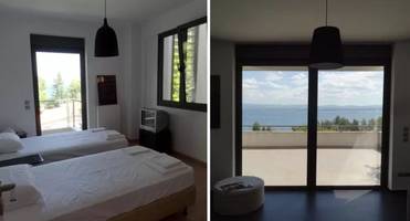 Вилла с 4 спальнями и частным бассейном находится прямо на берегу моря в северо-восточной части Корфу, в 5 минутах ходьбы от пляжа и в пешей доступности от всей инфраструктуры ближайшего курортного поселка Кассиопи.
