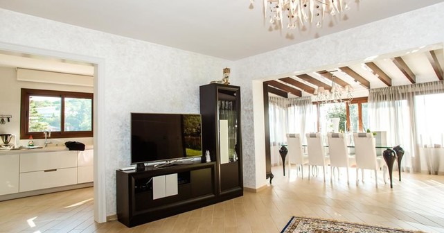 Вилла после недавней реконструкции оборудована интернетом, спутниковым ТВ, видеонаблюдением (8 камер), сигнализацией. Кухня испанской фирмы Santos. Встроенная бытовая техника Neff (холодильник, морозилка, стиральная машина, посудомоечная машина, микроволновая печь, духовка) полностью русифицирована. Профессиональная газовая плита Miele (на 5 конфорок), профессиональная вытяжка Gutmann.