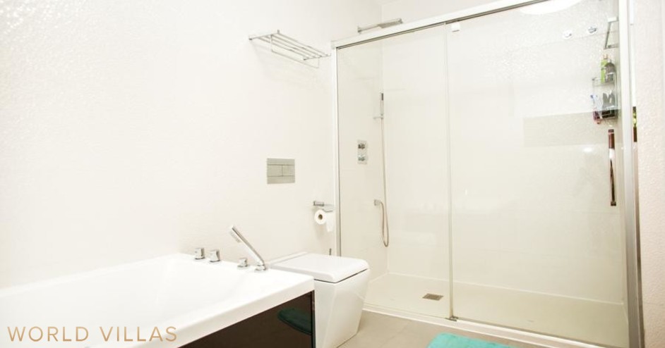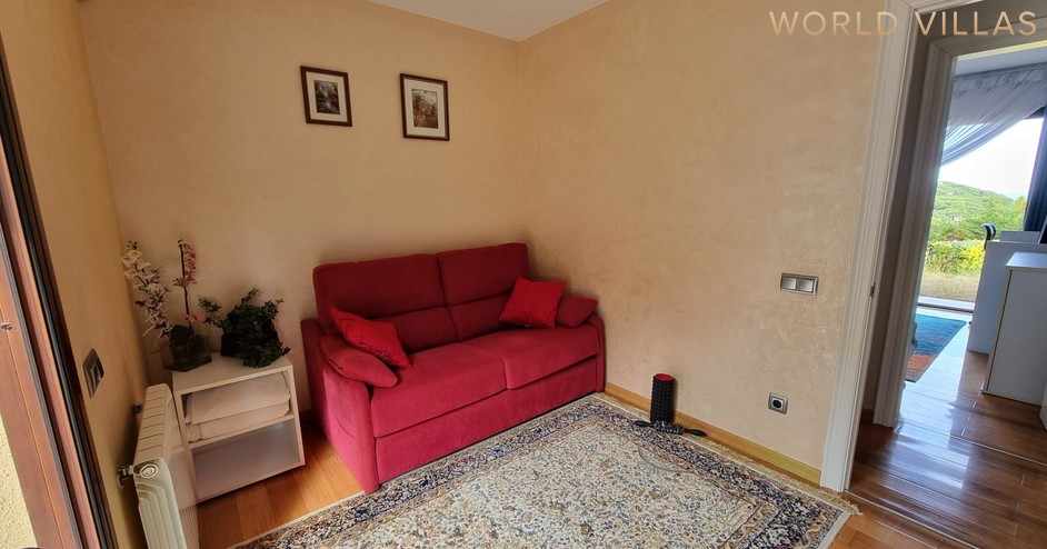 1й этаж - двухместная спальня с выходом на террасу и к бассейну, ванная комната (с душевой кабиной) и гардеробная, есть возможность разместить небольшую кухню (под запрос).