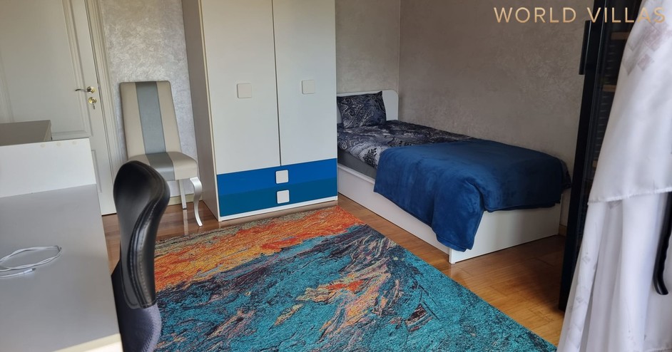На территории площадью 980 м2: бассейн 9мх3,5м (глубиной 1,40м -2,20м, подсветка, электролиз), меблированная терраса с обеденной зоной под тентом, зона барбекю с летней кухней, батут, паркинг.