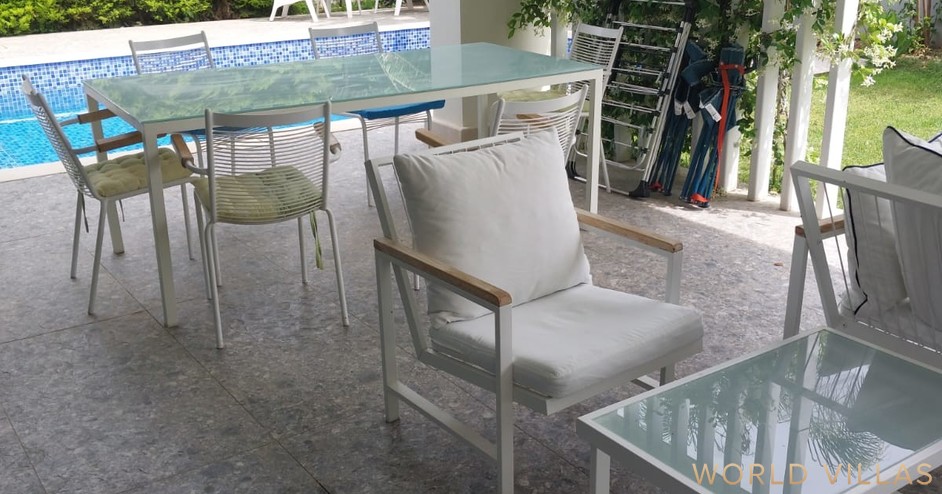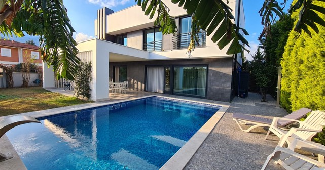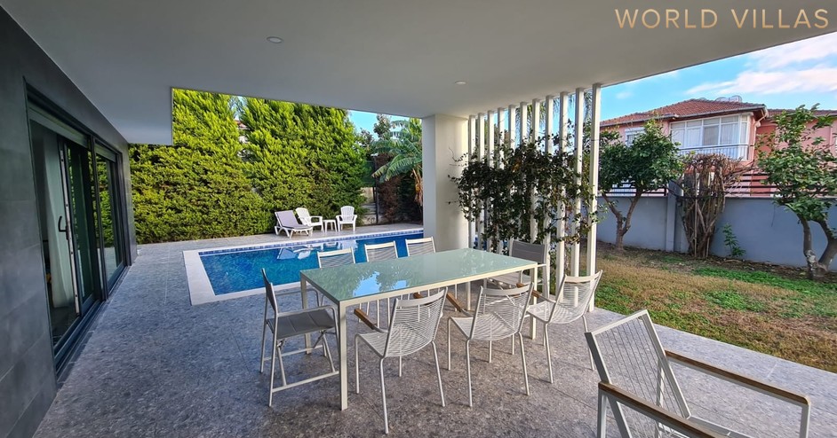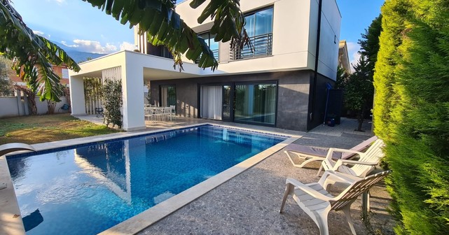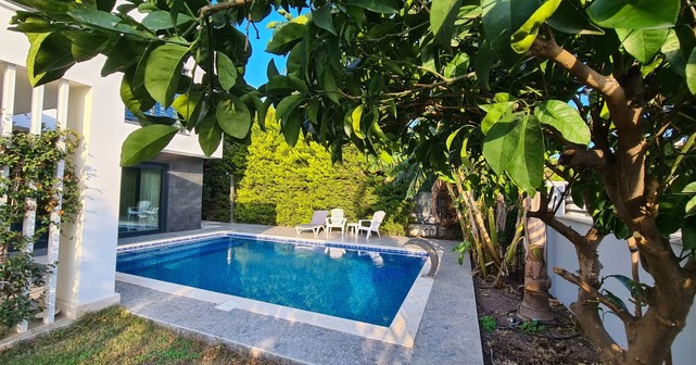 Современная отдельно стоящая вилла с частным бассейном расположена в районе Чамьюва недалеко от курорта Кемер, всего в 900 метрах от пляжа. Вилла находится в тихом и зелёном месте, идеально подходящем для семейного отдыха. Рядом вы найдете продуктовые магазины, кафе, аптеки и прогулочную зону. Удобная транспортная доступность и развитая инфраструктура района делают проживание максимально комфортным. Описание: 3 спальни 3 санузла просторная гостиная с кухней открытого типа частный бассейн зелёная территория с террасой и зоной отдыха интернет и вся бытовая техника парковка Дом полностью меблирован и оборудован всем необходимым для проживания: кондиционеры в каждой комнате, бытовая техника, посуда, постельное бельё и полотенца.