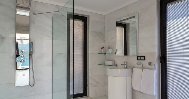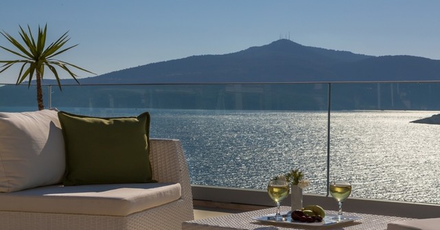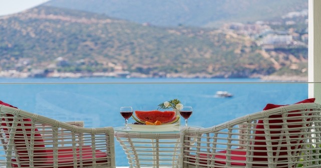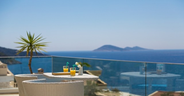 Третий этаж — одна спальня с двумя односпальными кроватями и ванной комнатой, а также спальня с двуспальной кроватью, ванной комнатой, джакузи и балконом с видом на море. На балконе установлены стол и стулья для двух персон.